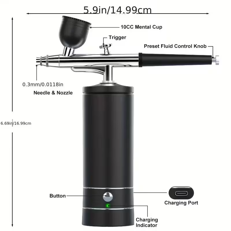 The built-in mini compressor provides consistent airflow for perfect coverage without splashes or streaks. Its lightweight, cordless design gives you complete freedom to create anywhere, while the easy-to-clean nozzle ensures effortless maintenance between uses.