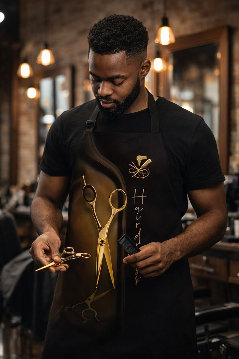 Elevate your professional image with the ScissorElegance Pro Cape, a premium barber and hairdressing cape designed to combine elegant style, durability, and everyday functionality. Featuring a refined scissor-pattern design on a sleek black finish, it adds a sophisticated touch to any barbershop or beauty salon.